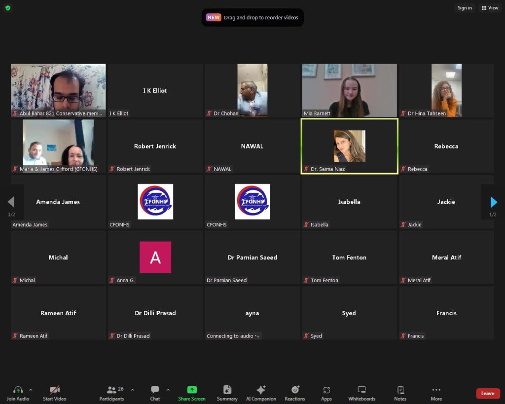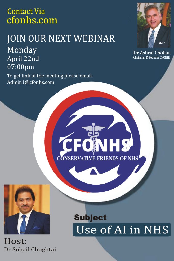 On April 22nd, we hosted a highly insightful webinar on the integration of artificial intelligence (AI) in the National Health Service (NHS). The event saw participation from a large number of doctors, nurses, and healthcare professionals, all of whom contributed valuable perspectives on AI’s potential and challenges within the NHS. The keynote speaker for the session was Dr. Chughtai, an esteemed expert in medical technology and AI-driven healthcare solutions.